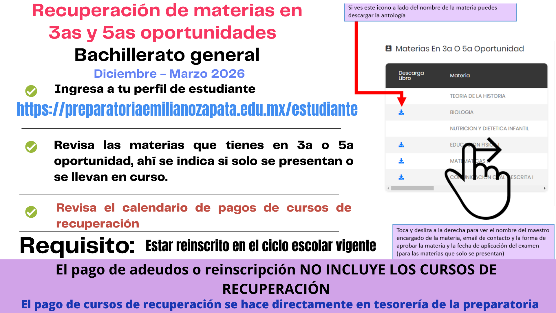 Información importe sobre examenes y cursos de recuperación