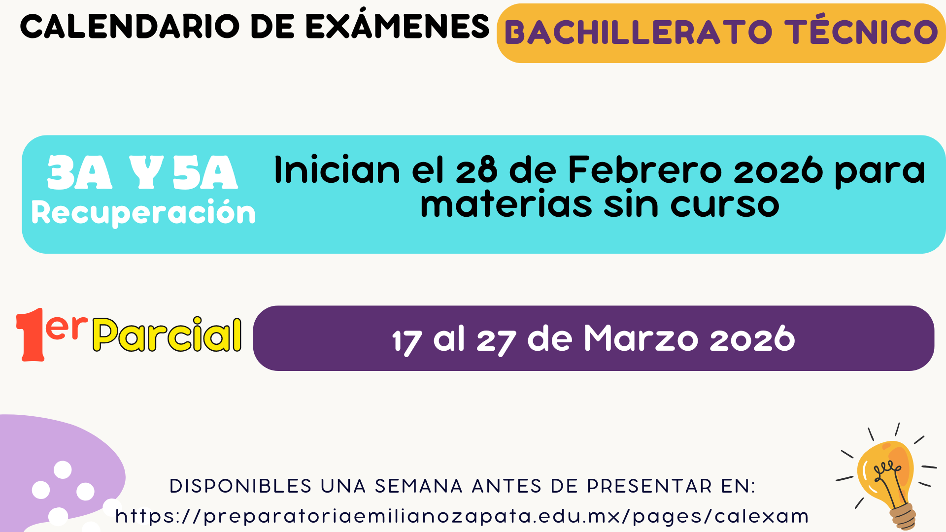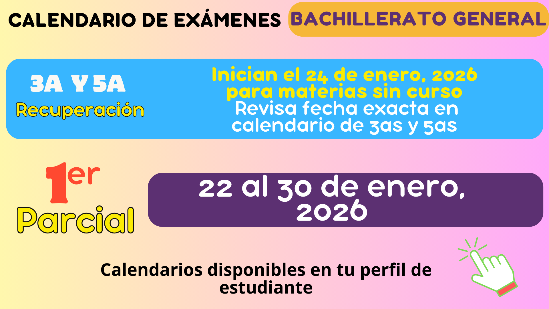 Consulta los calendarios de exámenes de parciales y oportunidades