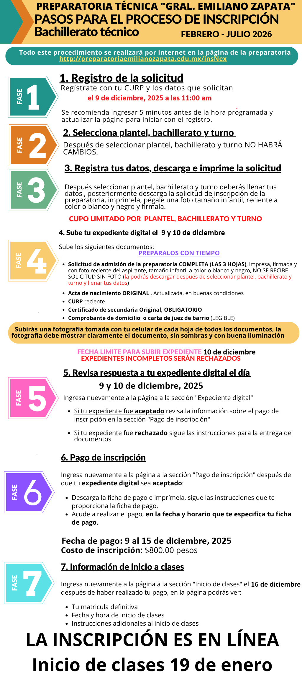 Es OBLIGATORIO tener tu secundaria TERMINADA y contar con el CERTIFICADO DE SECUNDARIA para poder inscribirte a esta convocatoria. SI AÚN NO TERMINAS LA SECUNDARIA debes esperar información en Abril 2026