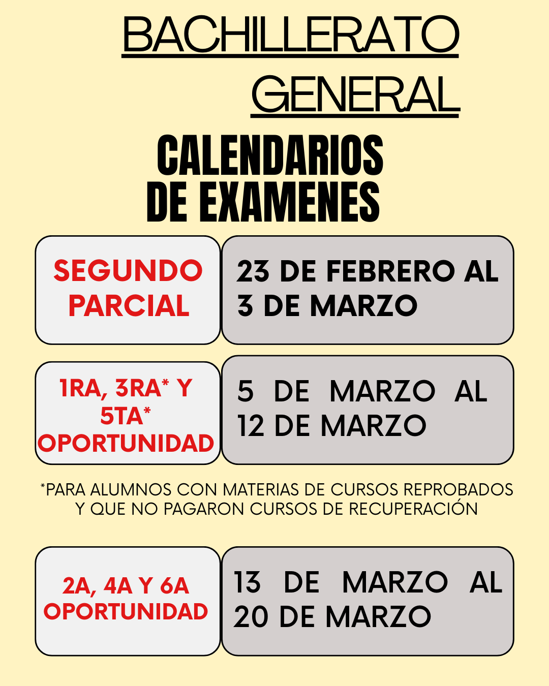 Información importe sobre examenes y cursos de recuperación