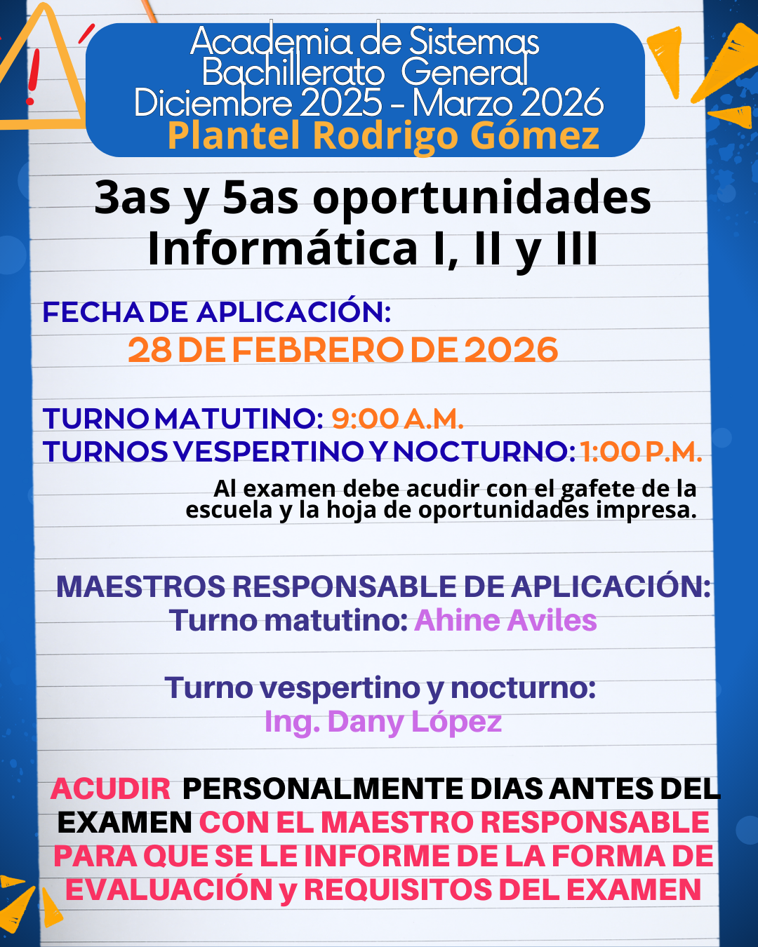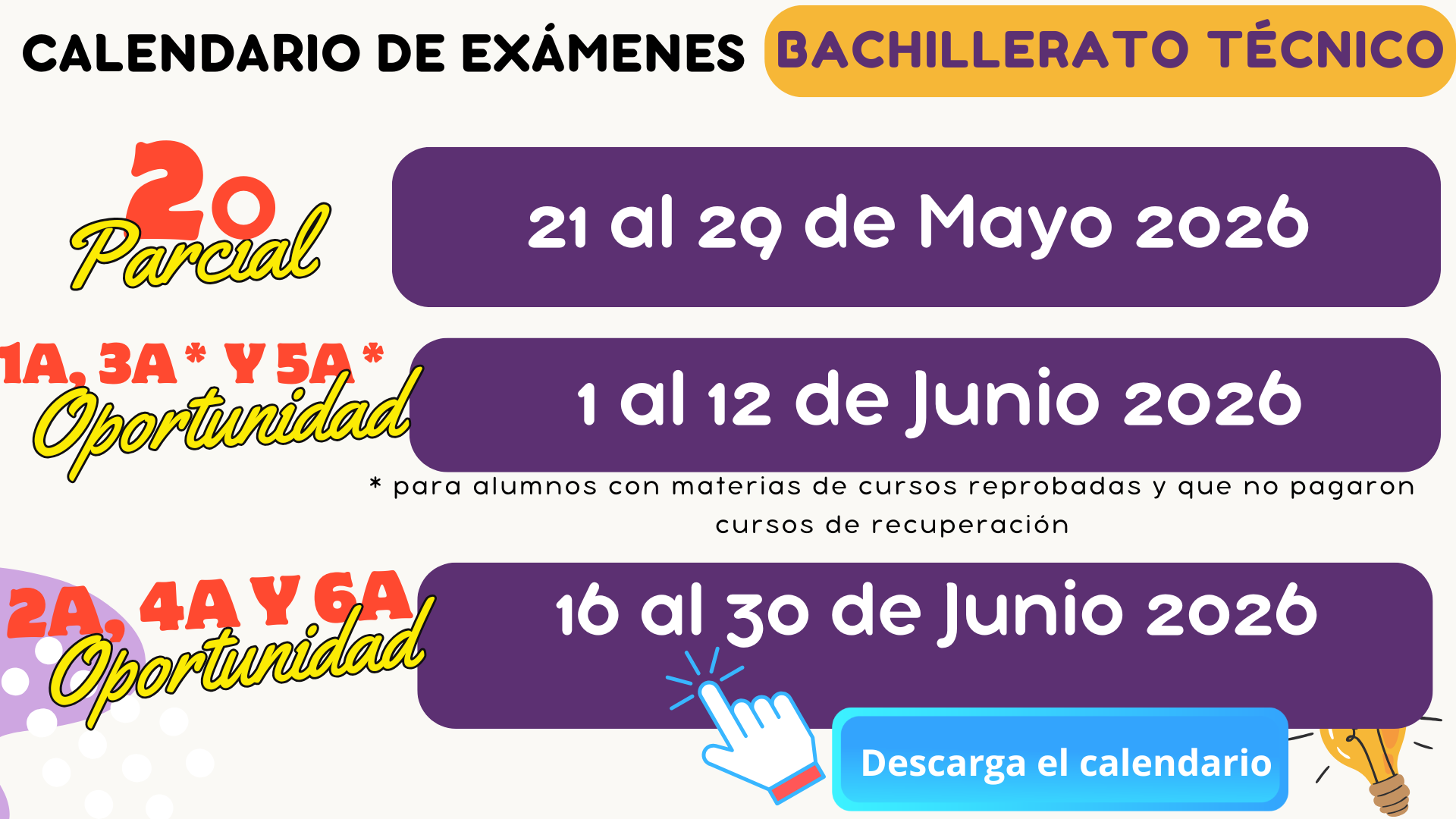 Aqui encontrarás información sobre la próxima aplicación de exámenes y cursos de recuperación