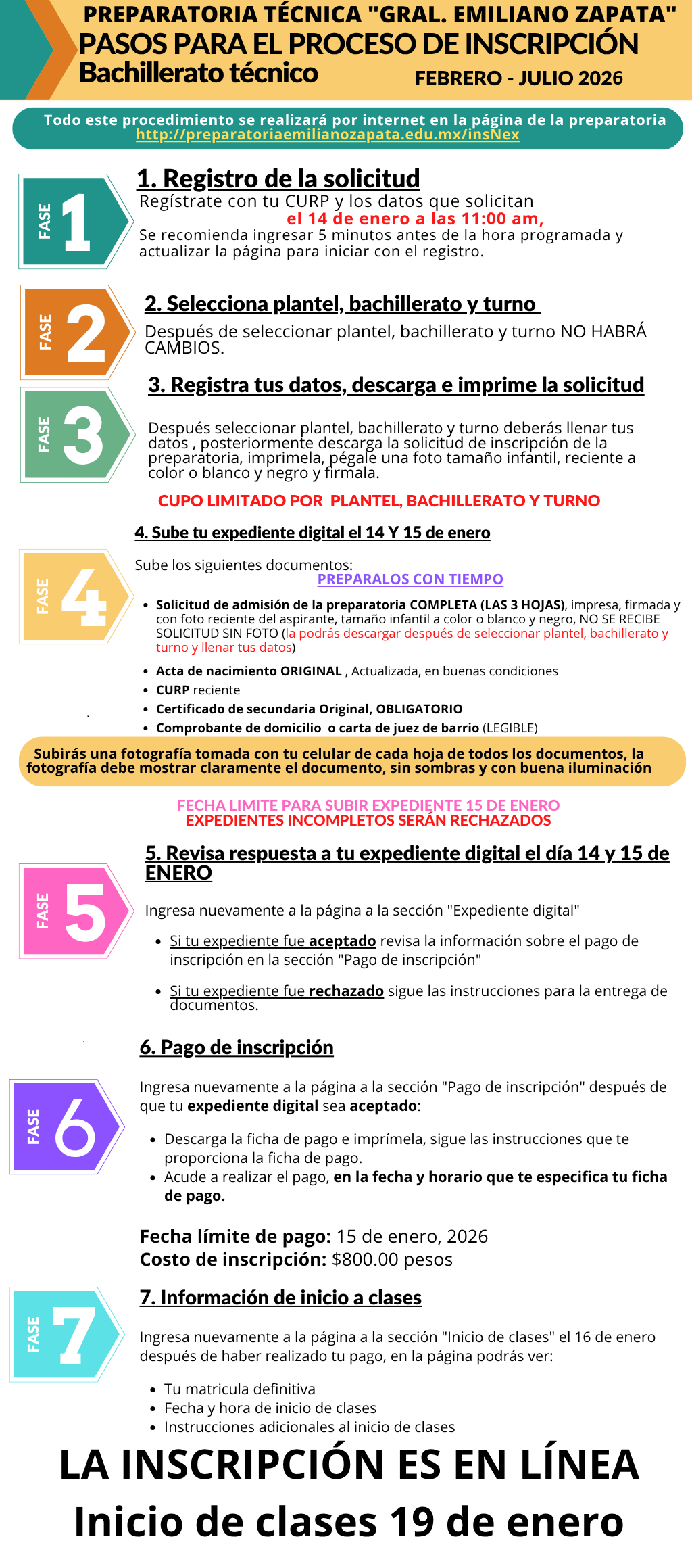 Es OBLIGATORIO tener tu secundaria TERMINADA y contar con el CERTIFICADO DE SECUNDARIA para poder inscribirte a esta convocatoria. SI AÚN NO TERMINAS LA SECUNDARIA debes esperar información en Abril 2026